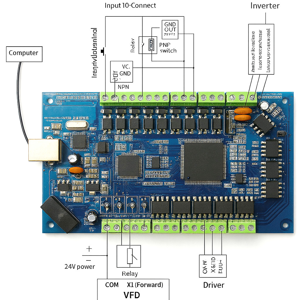 Permite ligar sensor Home, Fim-de-Curso, Probe, Cycle-Start...
